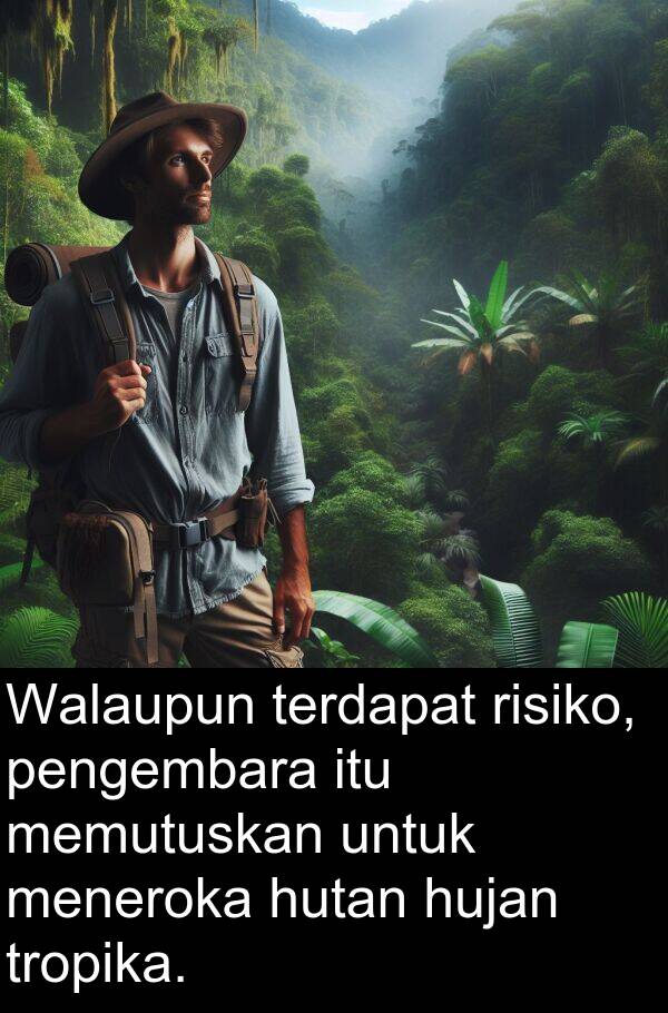 Walaupun terdapat risiko, pengembara itu memutuskan untuk meneroka hutan hujan tropika.
