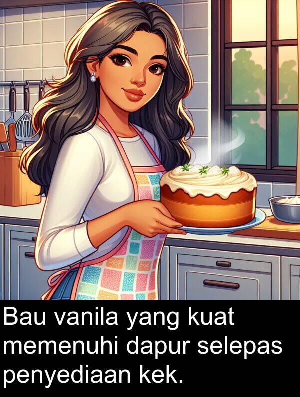 Bau vanila yang kuat memenuhi dapur selepas penyediaan kek.
