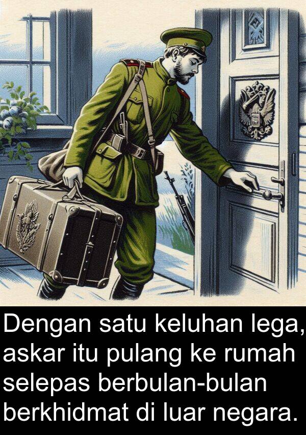 Dengan satu keluhan lega, askar itu pulang ke rumah selepas berbulan-bulan berkhidmat di luar negara.