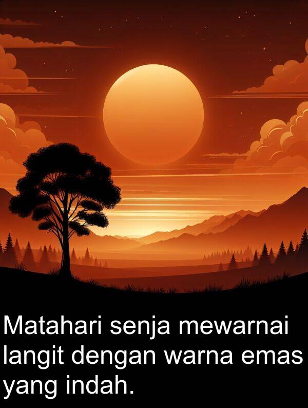 Ayat ringkas dan mudah dengan “senja”, sesuai untuk kanak-kanak/sekolah rendah, beserta frasa lazim dan kata berkaitan.