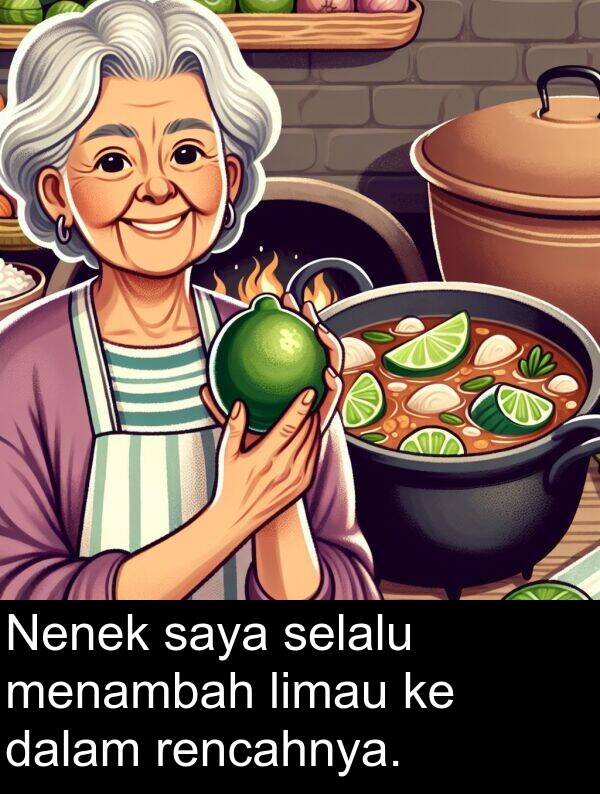 Nenek saya selalu menambah limau ke dalam rencahnya.