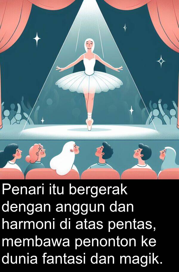 Penari itu bergerak dengan anggun dan harmoni di atas pentas, membawa penonton ke dunia fantasi dan magik.