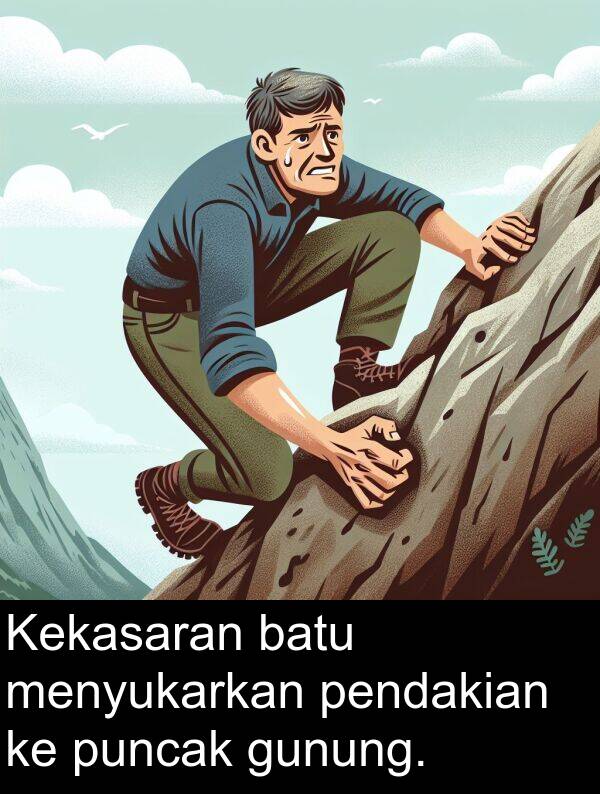 Ayat ringkas dan mudah dengan “pendakian”, sesuai untuk kanak-kanak/sekolah rendah, beserta frasa lazim dan kata berkaitan.