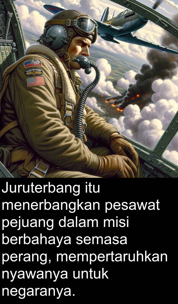 Juruterbang itu menerbangkan pesawat pejuang dalam misi berbahaya semasa perang, mempertaruhkan nyawanya untuk negaranya.