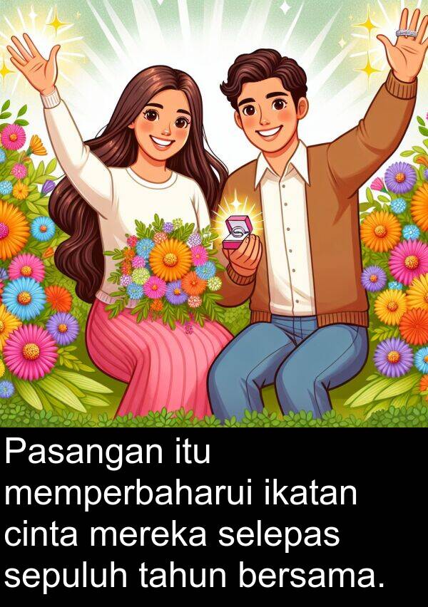 Pasangan itu memperbaharui ikatan cinta mereka selepas sepuluh tahun bersama.