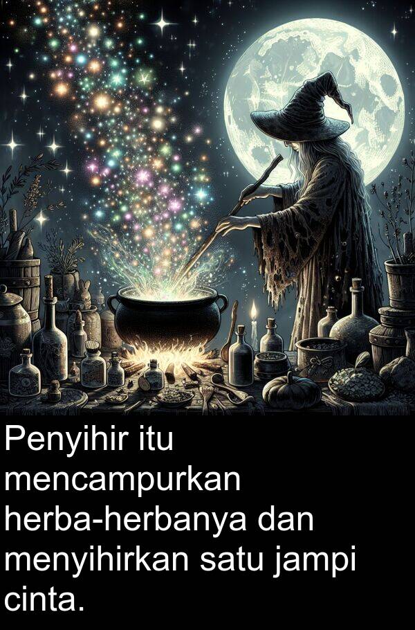 Penyihir itu mencampurkan herba-herbanya dan menyihirkan satu jampi cinta.