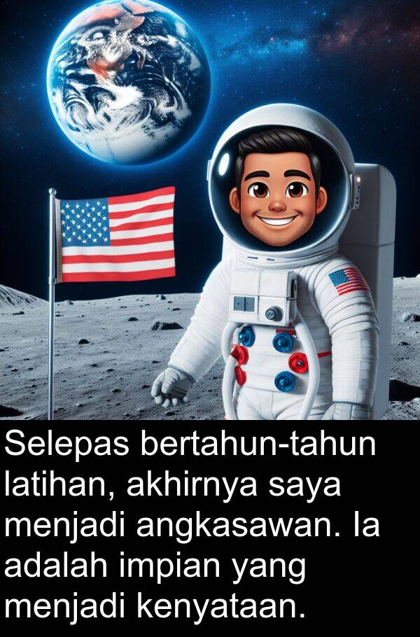 Selepas bertahun-tahun latihan, akhirnya saya menjadi angkasawan. Ia adalah impian yang menjadi kenyataan.