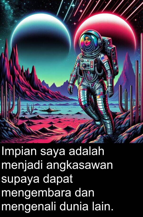 Ayat ringkas dan mudah dengan “angkasawan”, sesuai untuk kanak-kanak/sekolah rendah, beserta frasa lazim dan kata berkaitan.