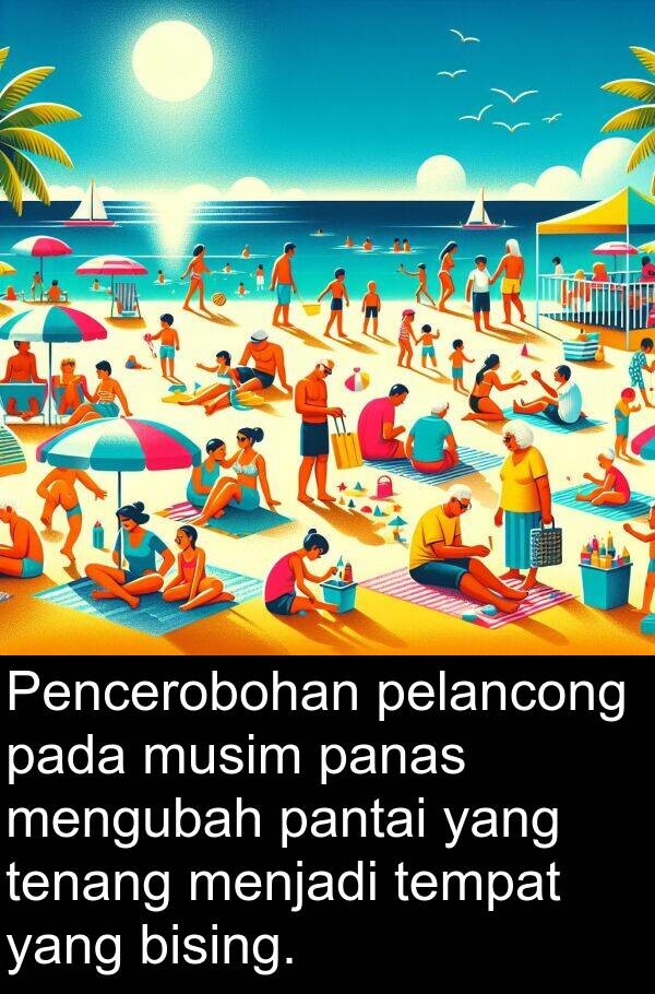 Ayat ringkas dan mudah dengan “pelancong”, sesuai untuk kanak-kanak/sekolah rendah, beserta frasa lazim dan kata berkaitan.
