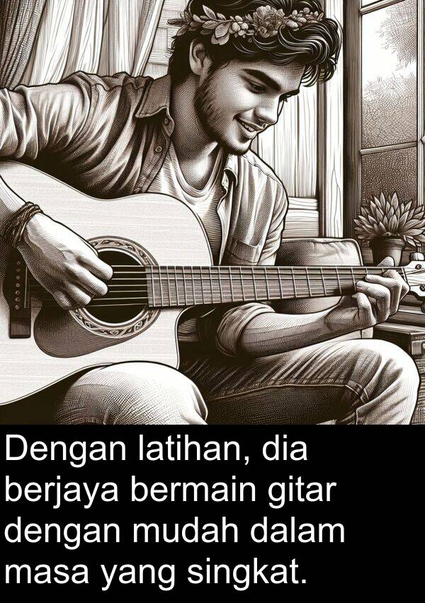 Dengan latihan, dia berjaya bermain gitar dengan mudah dalam masa yang singkat.