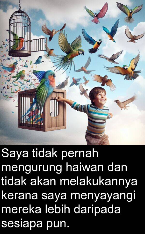 Saya tidak pernah mengurung haiwan dan tidak akan melakukannya kerana saya menyayangi mereka lebih daripada sesiapa pun.