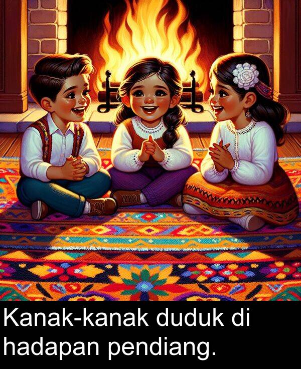 Kanak-kanak duduk di hadapan pendiang.