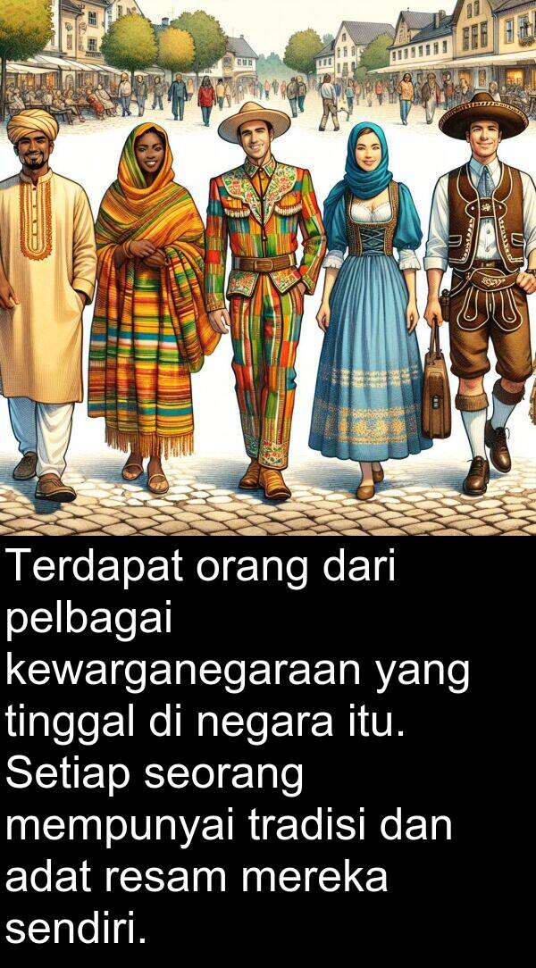 Terdapat orang dari pelbagai kewarganegaraan yang tinggal di negara itu. Setiap seorang mempunyai tradisi dan adat resam mereka sendiri.