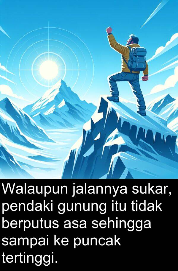 Ayat ringkas dan mudah dengan “pendaki”, sesuai untuk kanak-kanak/sekolah rendah, beserta frasa lazim dan kata berkaitan.