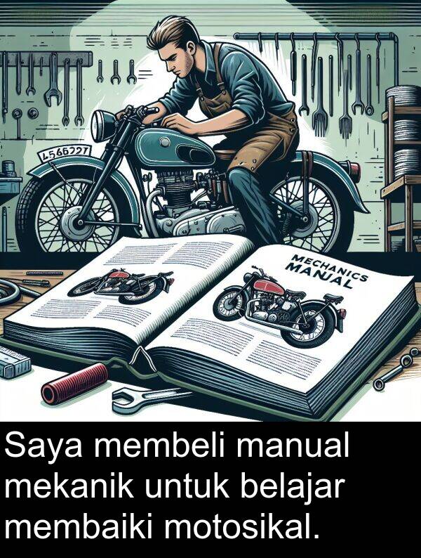 Saya membeli manual mekanik untuk belajar membaiki motosikal.