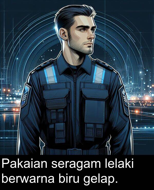 Pakaian seragam lelaki berwarna biru gelap.