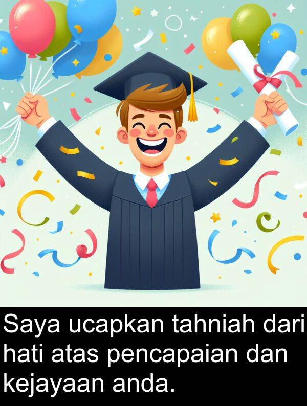 Saya ucapkan tahniah dari hati atas pencapaian dan kejayaan anda.