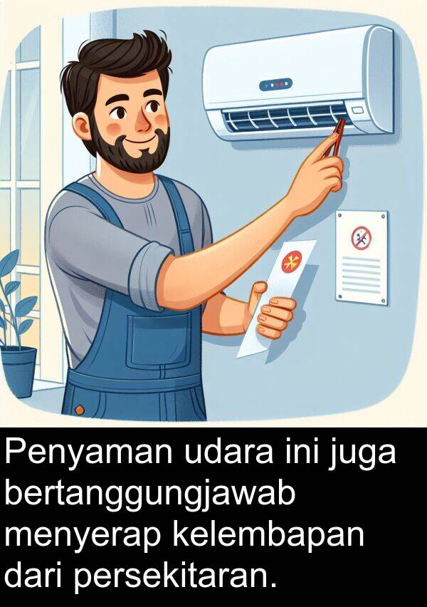Penyaman udara ini juga bertanggungjawab menyerap kelembapan dari persekitaran.