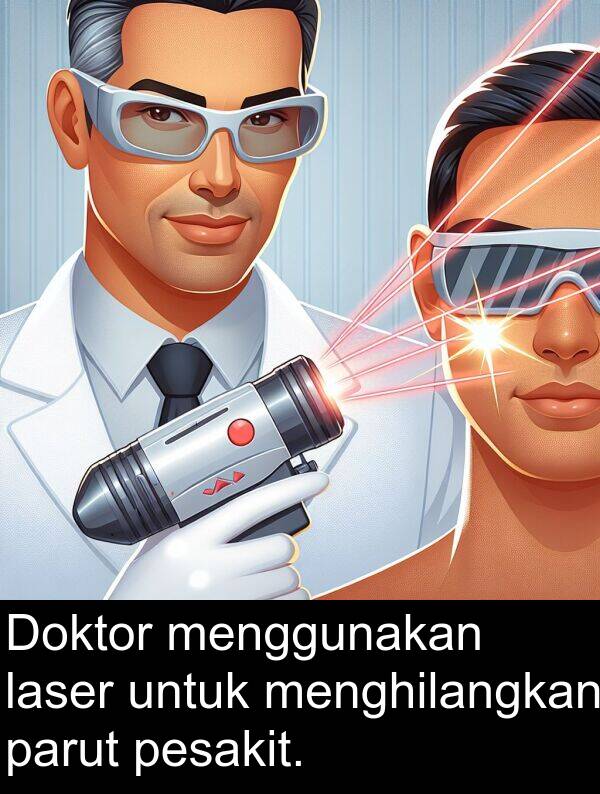 Ayat ringkas dan mudah dengan “parut”, sesuai untuk kanak-kanak/sekolah rendah, beserta frasa lazim dan kata berkaitan.