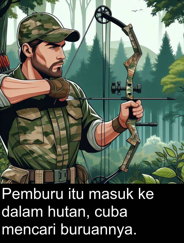 Pemburu itu masuk ke dalam hutan, cuba mencari buruannya.