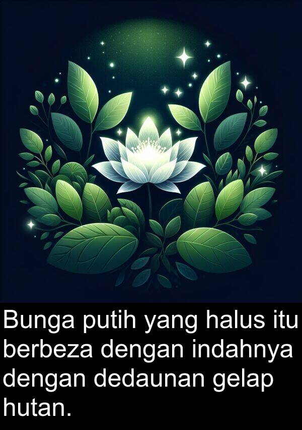 Bunga putih yang halus itu berbeza dengan indahnya dengan dedaunan gelap hutan.
