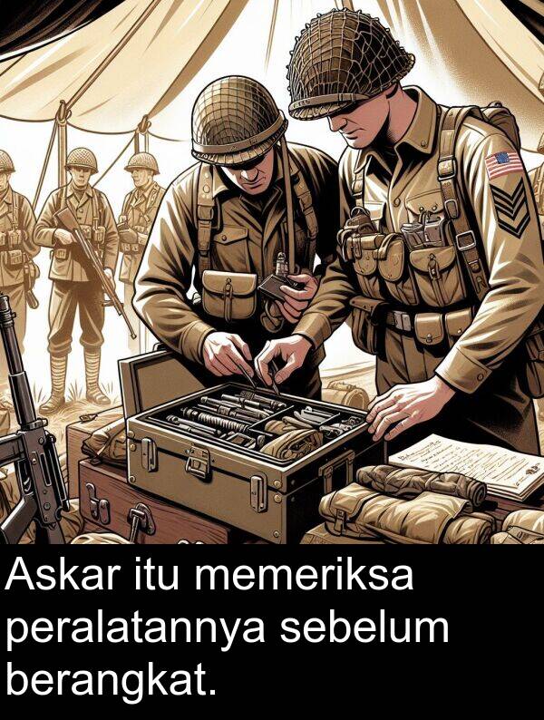 Askar itu memeriksa peralatannya sebelum berangkat.