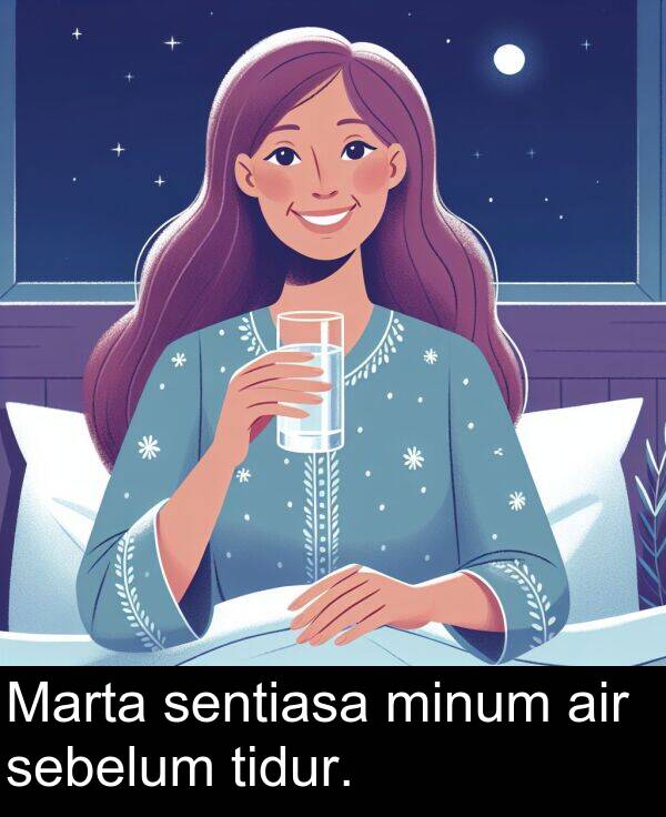 Marta sentiasa minum air sebelum tidur.