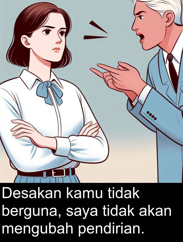 Desakan kamu tidak berguna, saya tidak akan mengubah pendirian.