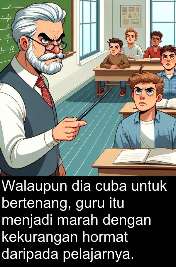 Walaupun dia cuba untuk bertenang, guru itu menjadi marah dengan kekurangan hormat daripada pelajarnya.
