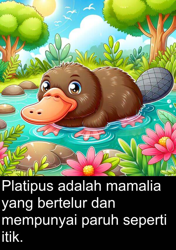 Platipus adalah mamalia yang bertelur dan mempunyai paruh seperti itik.